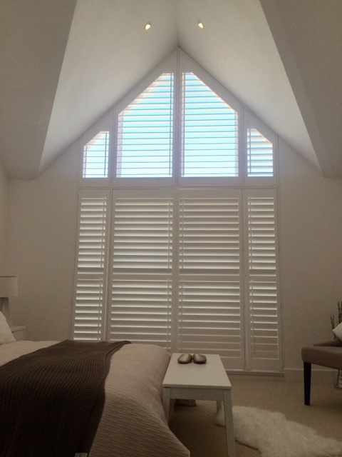 We were asked by a customer to install some shutters in a Loft Space in a home in Hampstead heath in London. Because of the style of window as you find in many lofts, we had to create special shape shutters to fit perfectly. All our shutters are made to measure and we can fit around even the most awkward shaped windows and openings so we knew that the client would be satisfied with the end result!